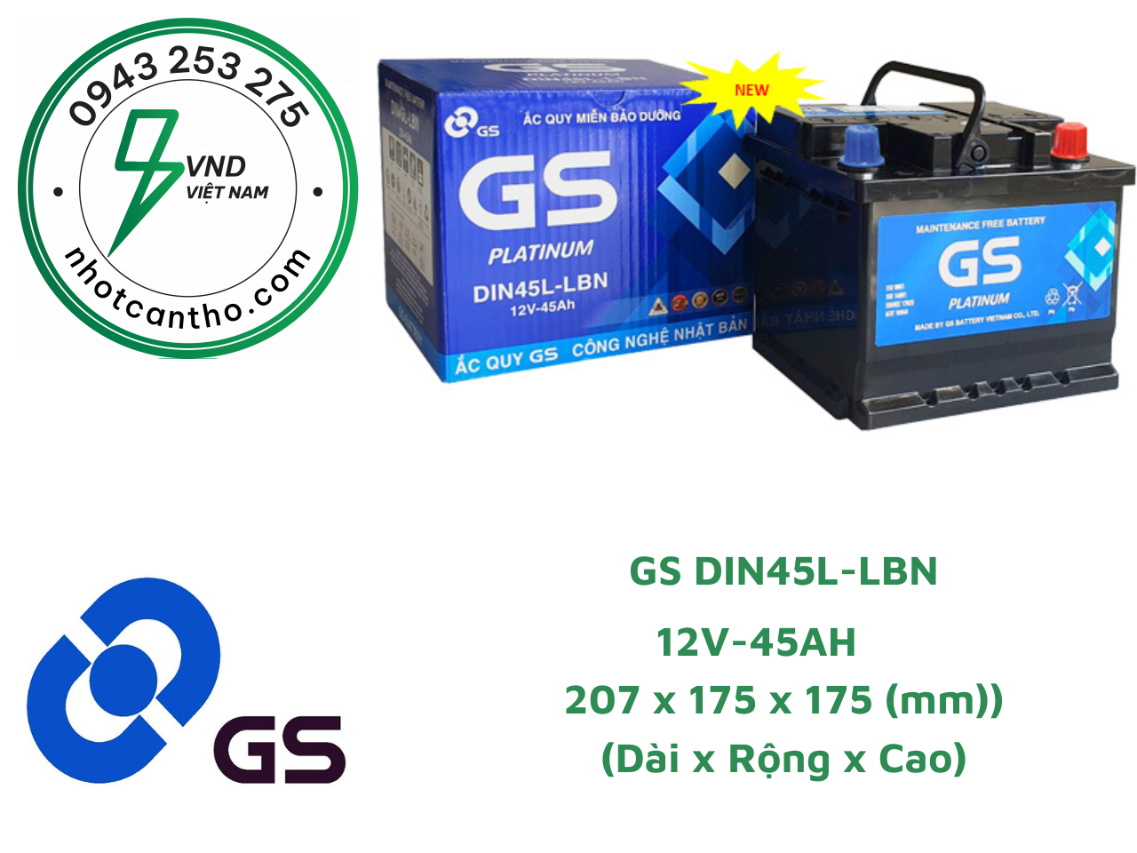 ẮC QUY GS DIN45L (12V-45AH)